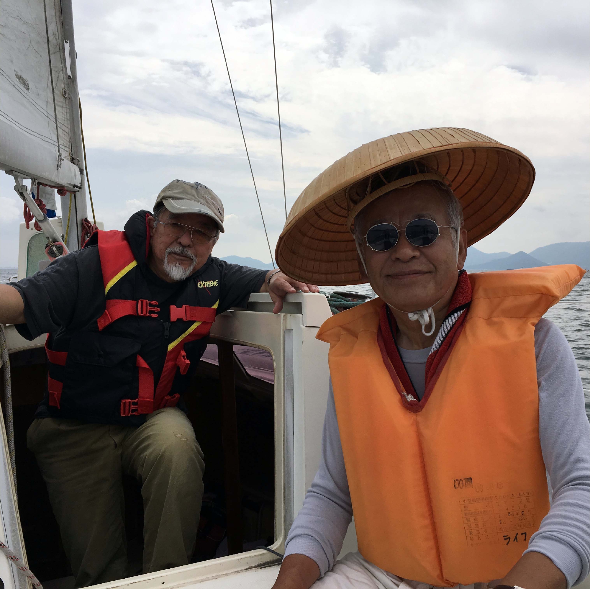 この日の海とヨット(ふらふら号)、写真9-28。私と米谷(ヨネチャン)氏、写真9-29。神戸から一緒してくれた木村氏(ミッチャン)、9-30。