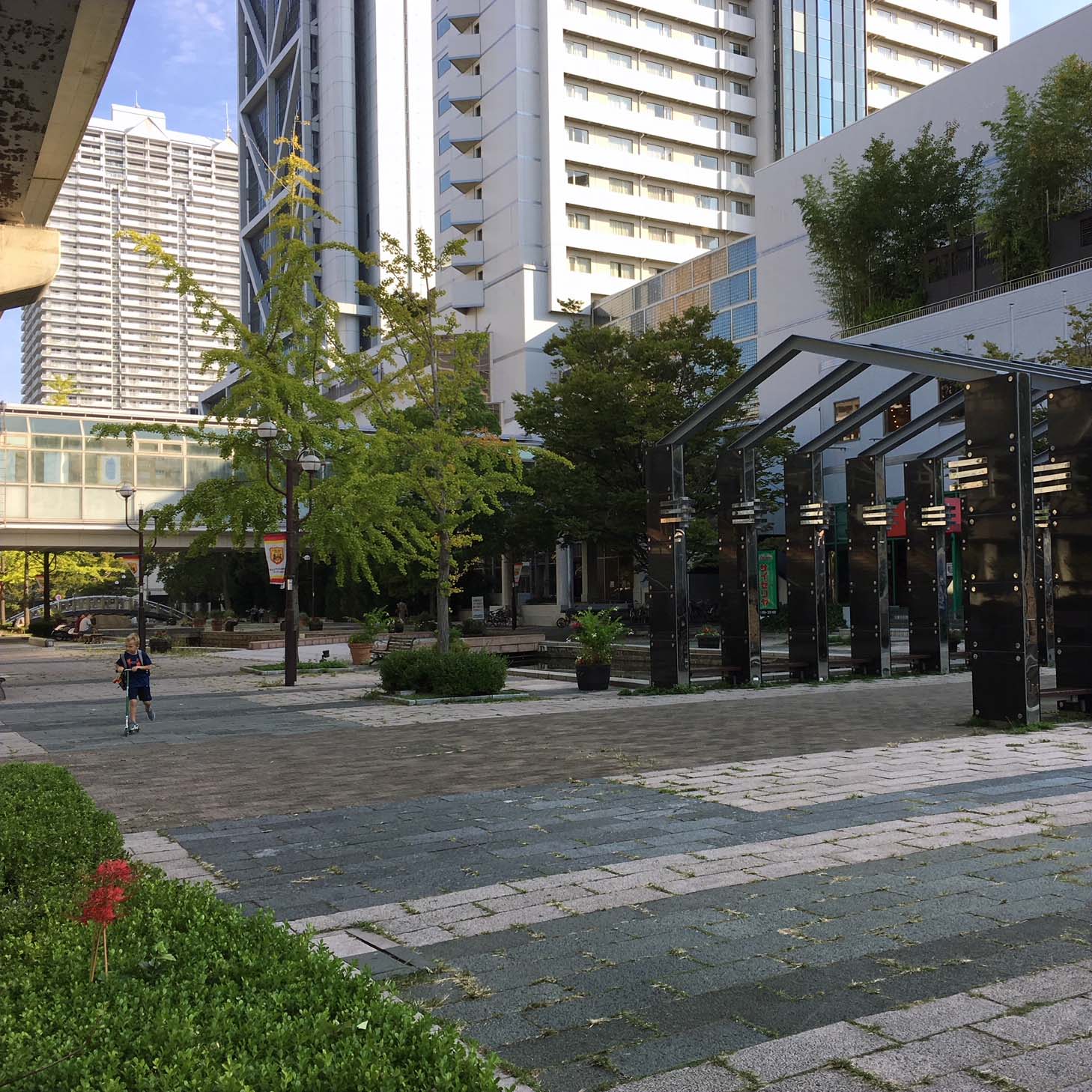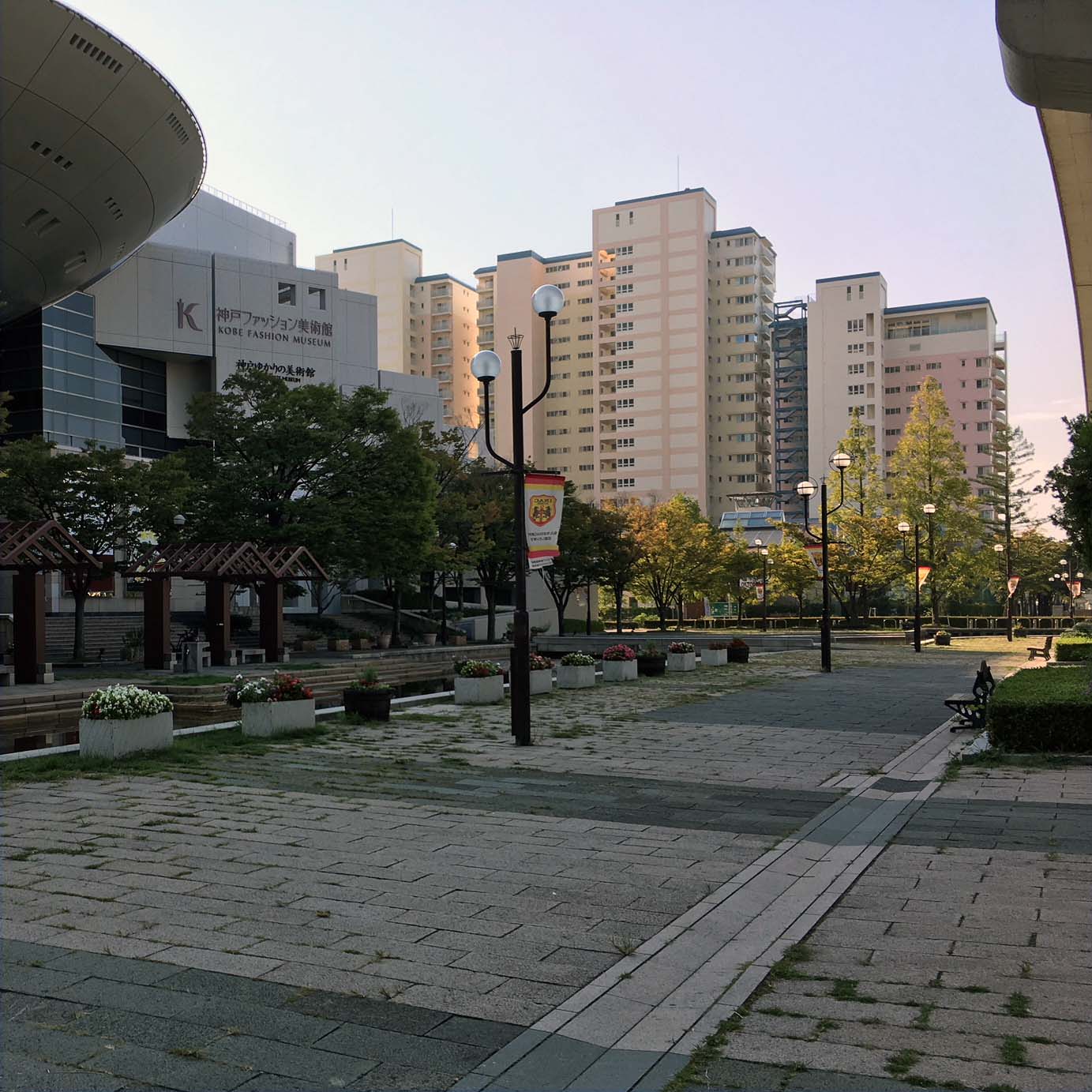 写真9-31は、早朝の六甲アイランド・神戸ファッション美術館前左に東南方向の風景。写真9-32は、北東方向の風景です。