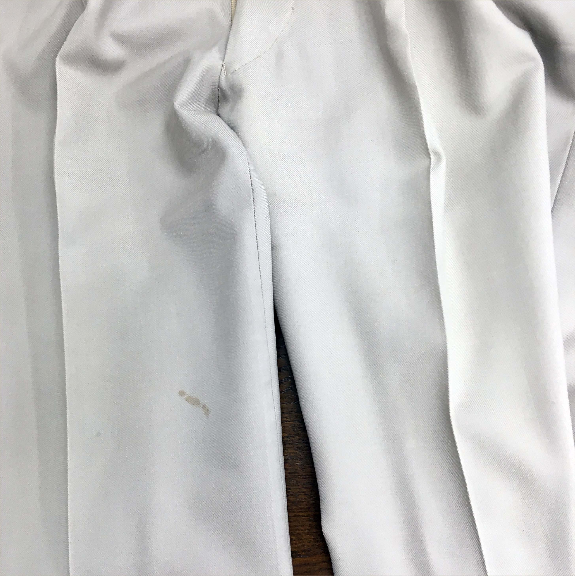 私のズボンのシミ、何処のクリーニングに出しても取れてきません。明らかに、検品・点検ミスと考えられるのが2社(この会社は、従来から簡単なシミが取れたりとれなかったり)、落ちません(これ以上シミ抜きを行うと繊維を損ねます・・・)とされたのが1社でした。