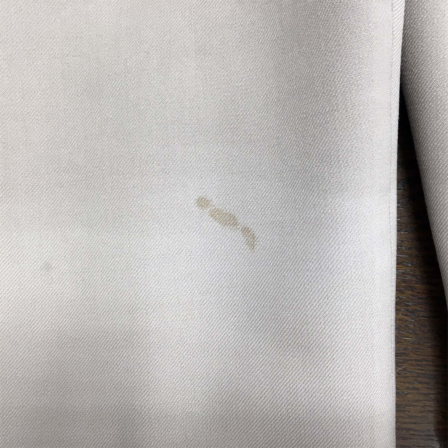 ばかばかしくて、文句を言う気もありません、次回前者のクリーニングに「ここにシミがあるから」と伝えて出しました。キレイにシミは落ちてきました。