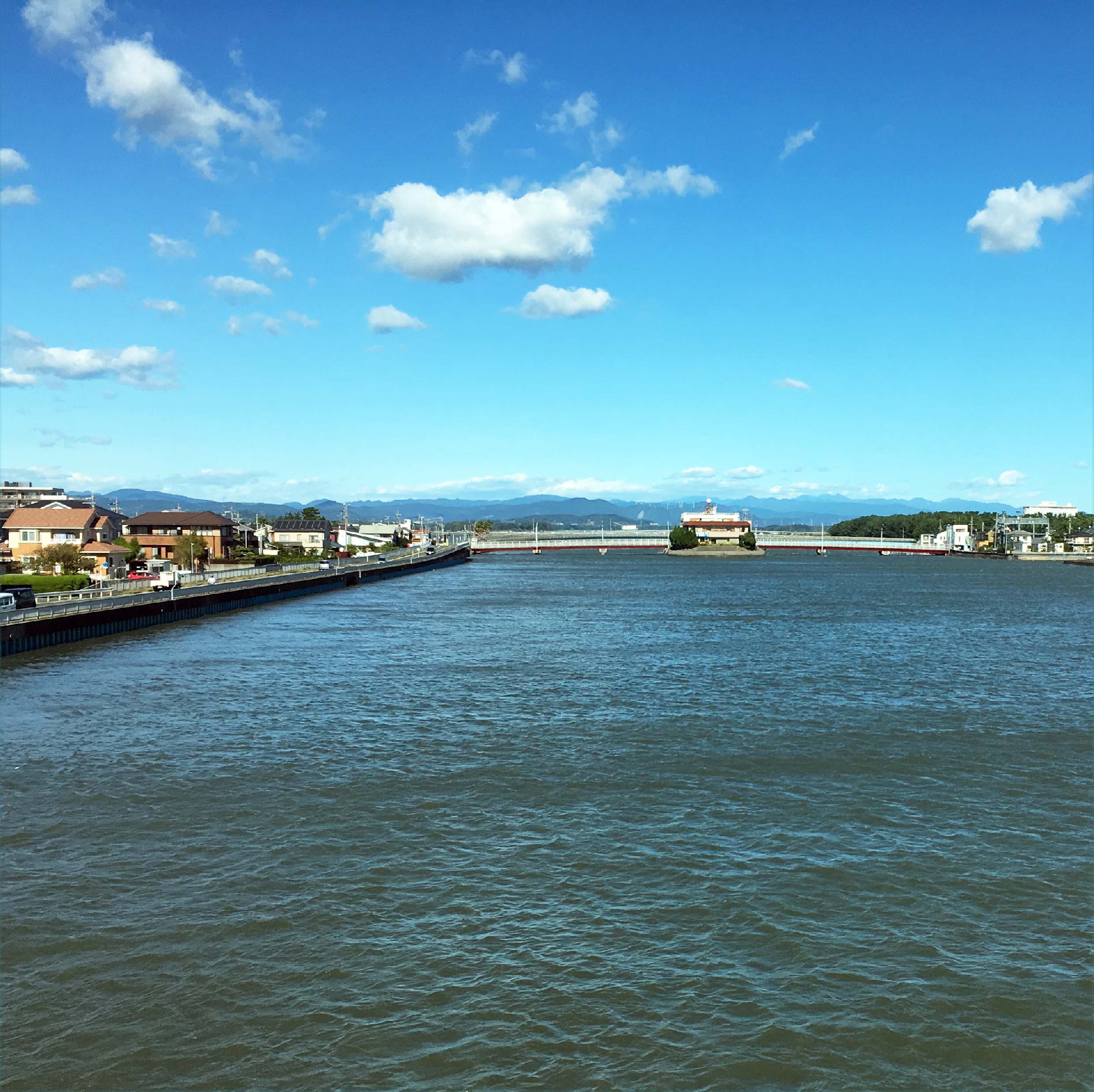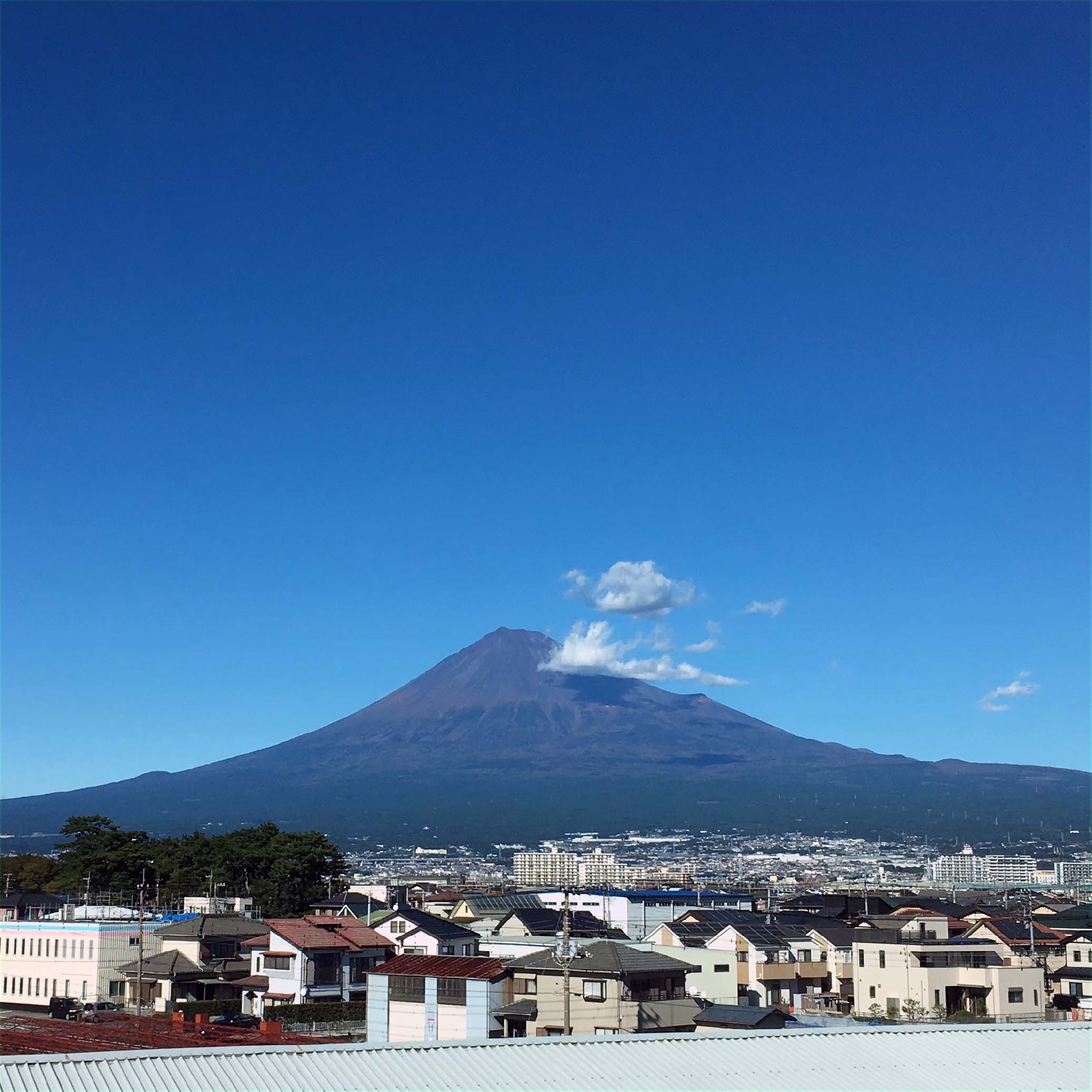 快晴、車窓から見る先は真っ青な空に小さなちぎれ雲が、浜名湖(写真10-32)と富士山(写真10-33,34)がキレイでした。