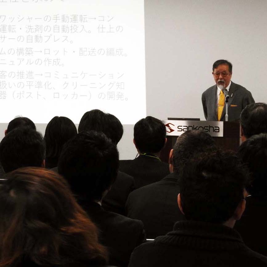 八王子の三幸社本社の会場を借りて、クリーニングの基礎的勉強会・機器とメンテナンスの講座を、昭和工業代表・徳田講師(写真12-46,47)を招いて開催しました。