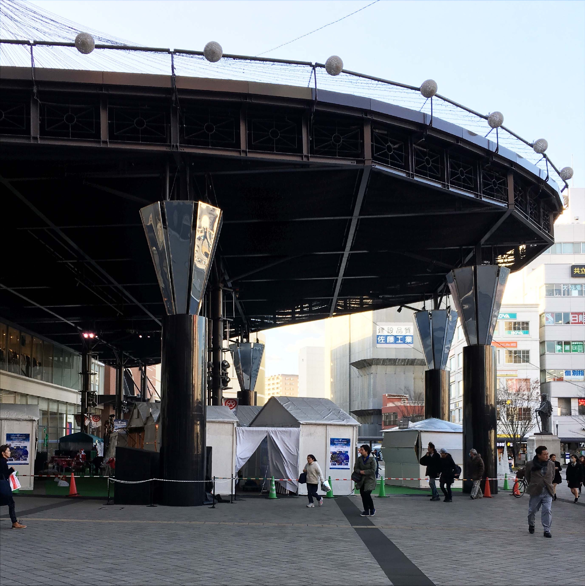 大分駅は折角の作りをしているのですが、イベントを行うために外から見映えのしないテントの後ろ側が見える状態でした。高松駅でもそうでしたが、建築、展示物をそもそもどのように見せるか、見えるかをもうチョット意識しなくては宝のもちぐされだと思うのですが。(写真12-30)