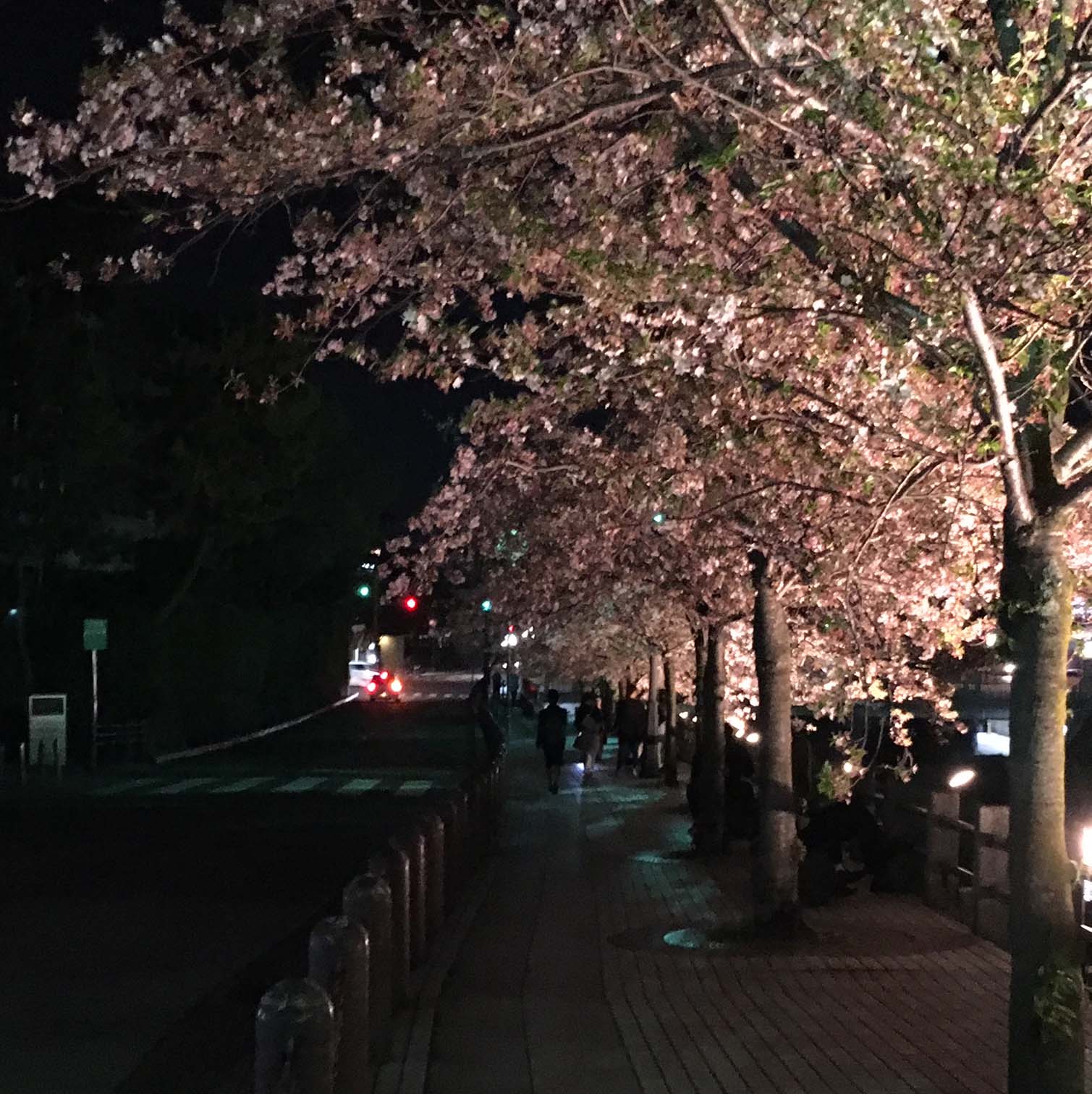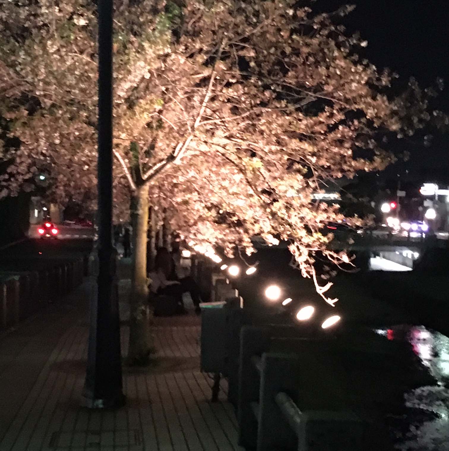 帰りは芦屋駅からこたふく(自宅)まで、夜桜見物をかねて芦屋川沿いを夜の散歩としゃれてみました。夜の21時前ですが、まだベンチには夜桜の余韻に浸るように多くの人がおられました。