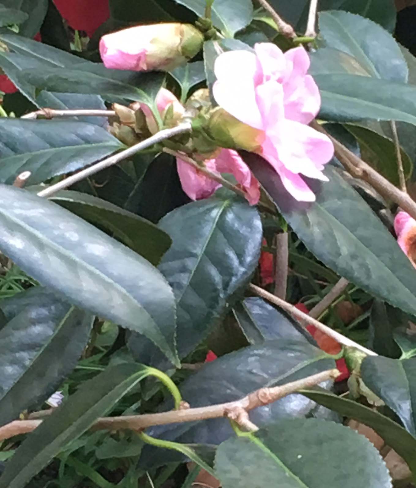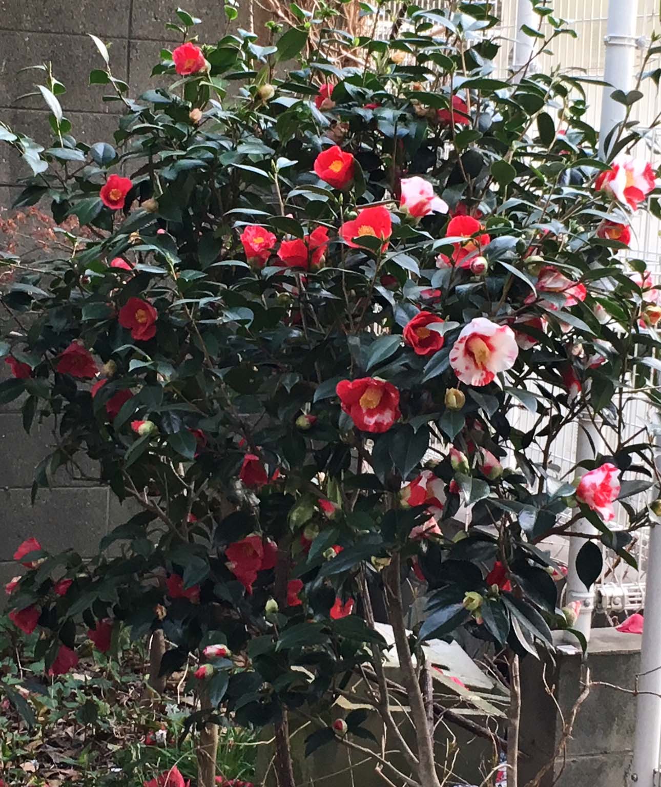 我が家の裏庭の「椿」です。赤、白地に赤、ピンクと色鮮やかで綺麗です。でも、確かに散るときは首から折れるようになるので、武士が嫌ったというのも判るような気がします。