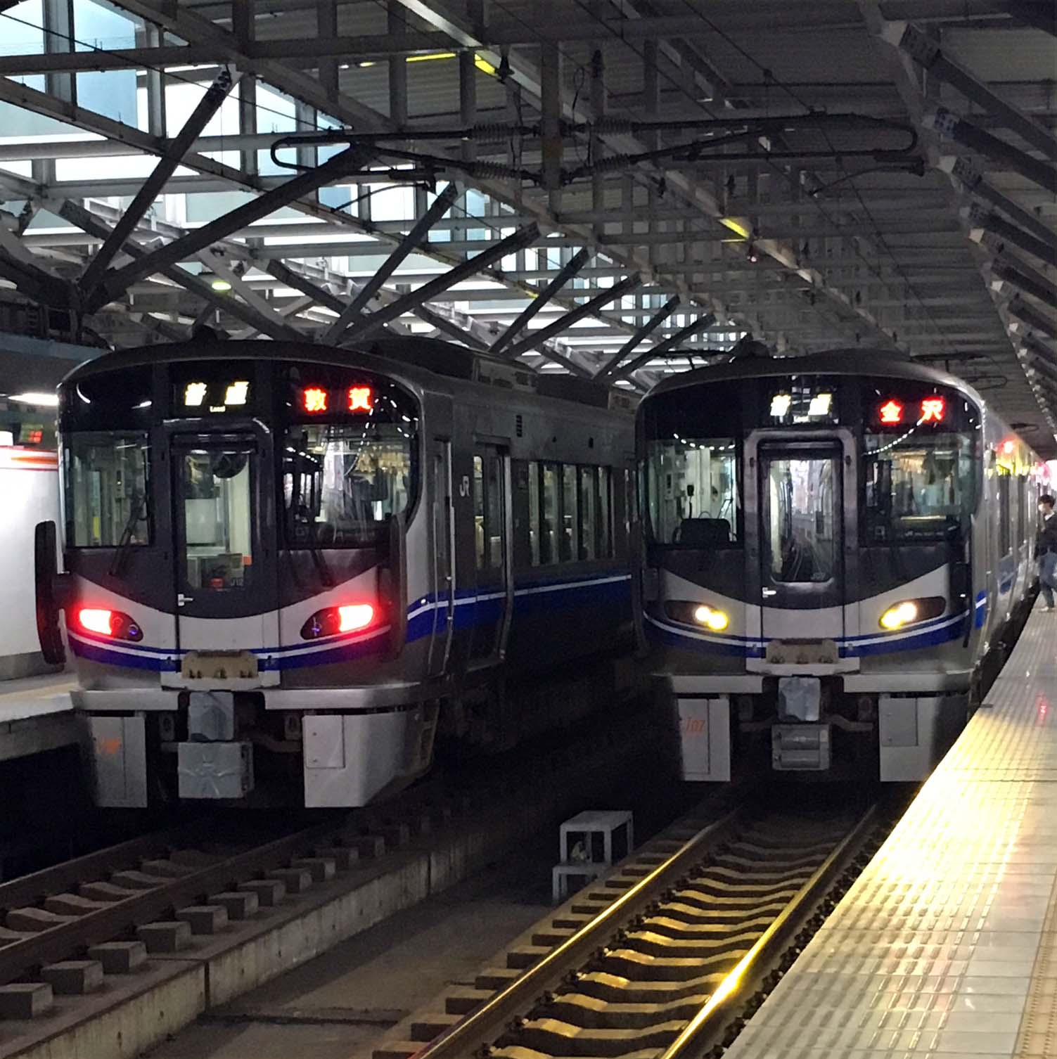 写真4-1は、降りた駅構内で見た金沢行きと敦賀行きの普通列車です。