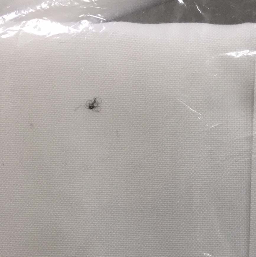 ワイシャツのテストの測定を行いました。相変わらず「毛ボコリ」は無くなりません。今度のは、包装紙の上から見つかるほど大きなものでした。