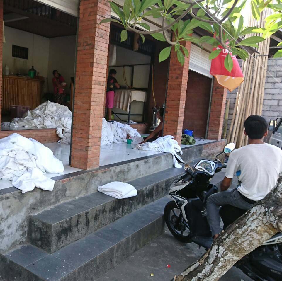 井藤さんが「バリ」へ行かれて、たまたまランドリー工場を見つけたので、外部からですが写真を撮って来ましたと・・。これを見たら、自分の商品はとてもクリーニングに出せないと、笑っていました。