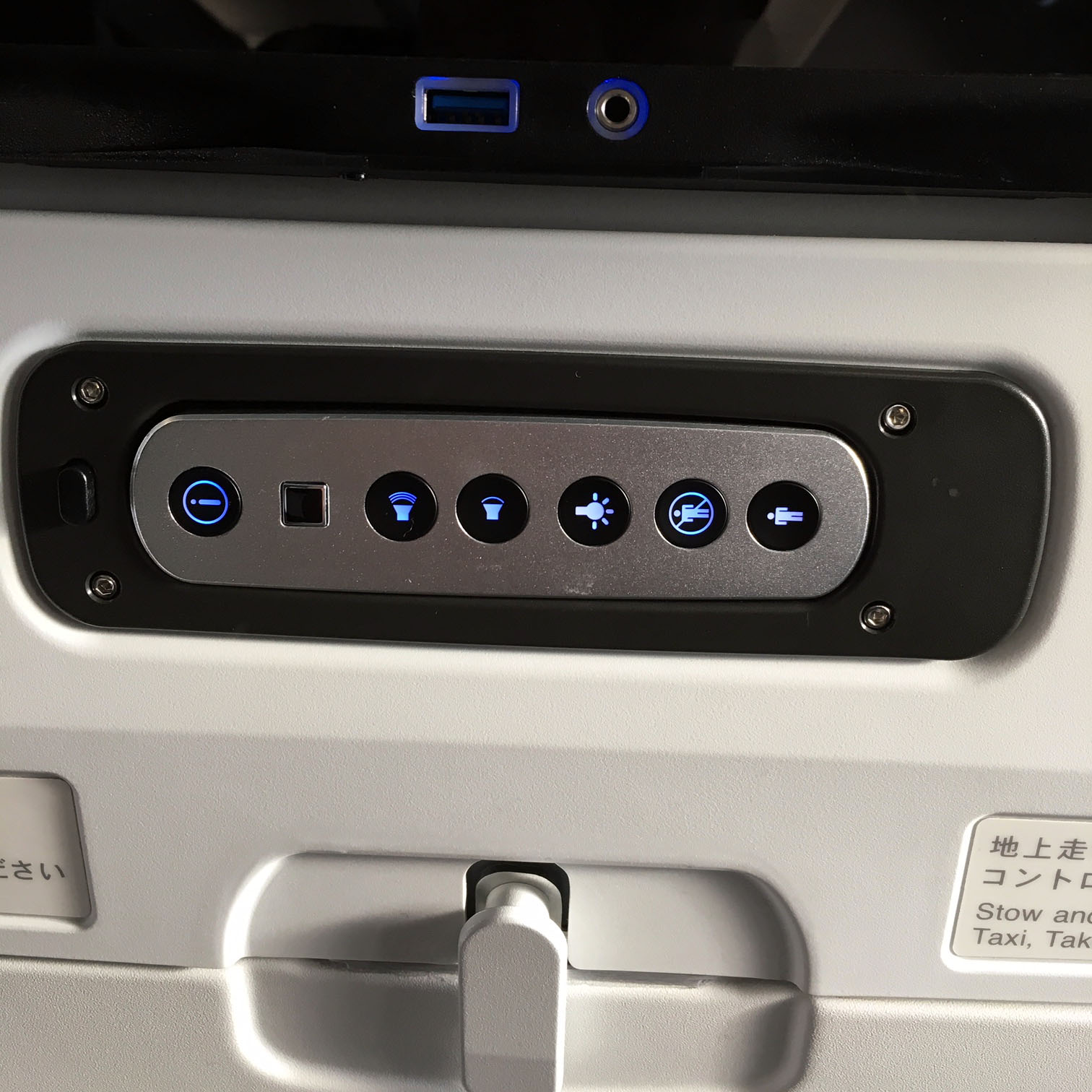 ANAの飛行機に乗ると、色々なスイッチ類の位置が違うのです。今までは肘掛けの位置にあったものが、前の座席の後ろにテレビ画面があり、その下にスイッチ類が並んでいました。即ち、自分の座席の正面になっていました。