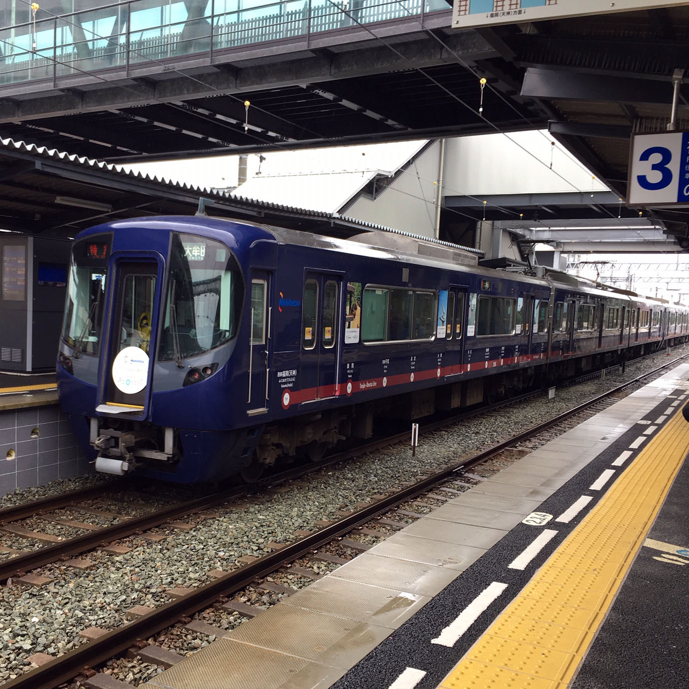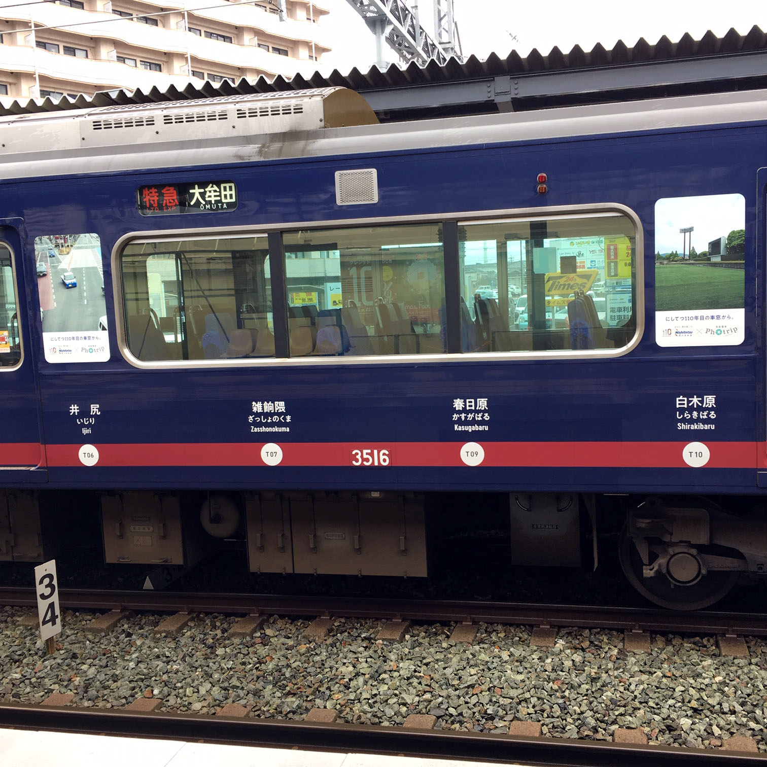 柳川駅で電車をまっていると、向かいのホームに変わった電車が入ってきました。