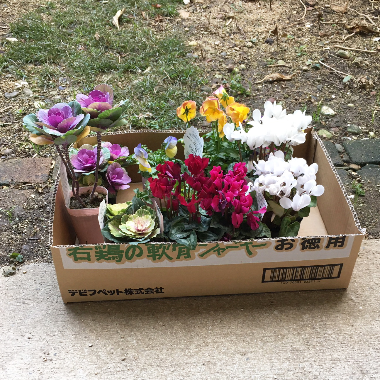掃除道具を取りに裏庭側に出ると、庭先と足下にパンジーの花々が庭に植えられぬまま放置(写真10-1、写真10-2)されていました。本来なら年末に庭に植えられていたのですが、妻が忙しくて出来なかったようです。それにしても、生き生きと咲いてる花はたくましいです。