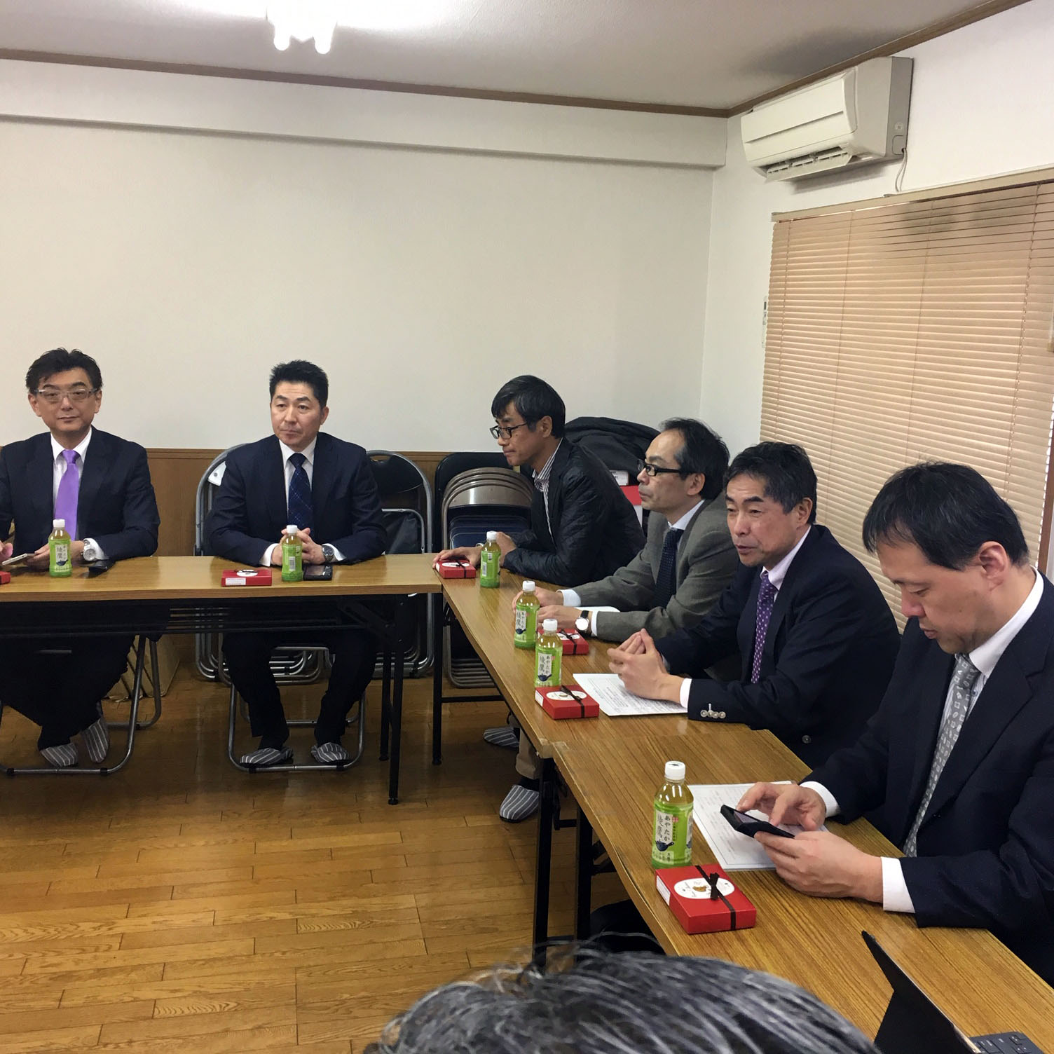 宴会は、最近はやりの畳みの間に椅子席が設けられた和洋折衷の座敷で行われました。