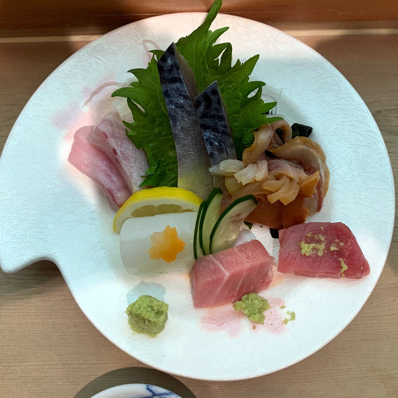 真ん中に ツブ貝、烏賊、鰤、鯛、生姜