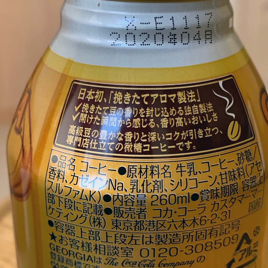 缶コーヒーの表示に「乳化剤」、界面活性剤は食品の世界でも沢山使われていて、「乳化剤」と云う名で表示されています。と話すときの例として写真を撮りました。写真5。