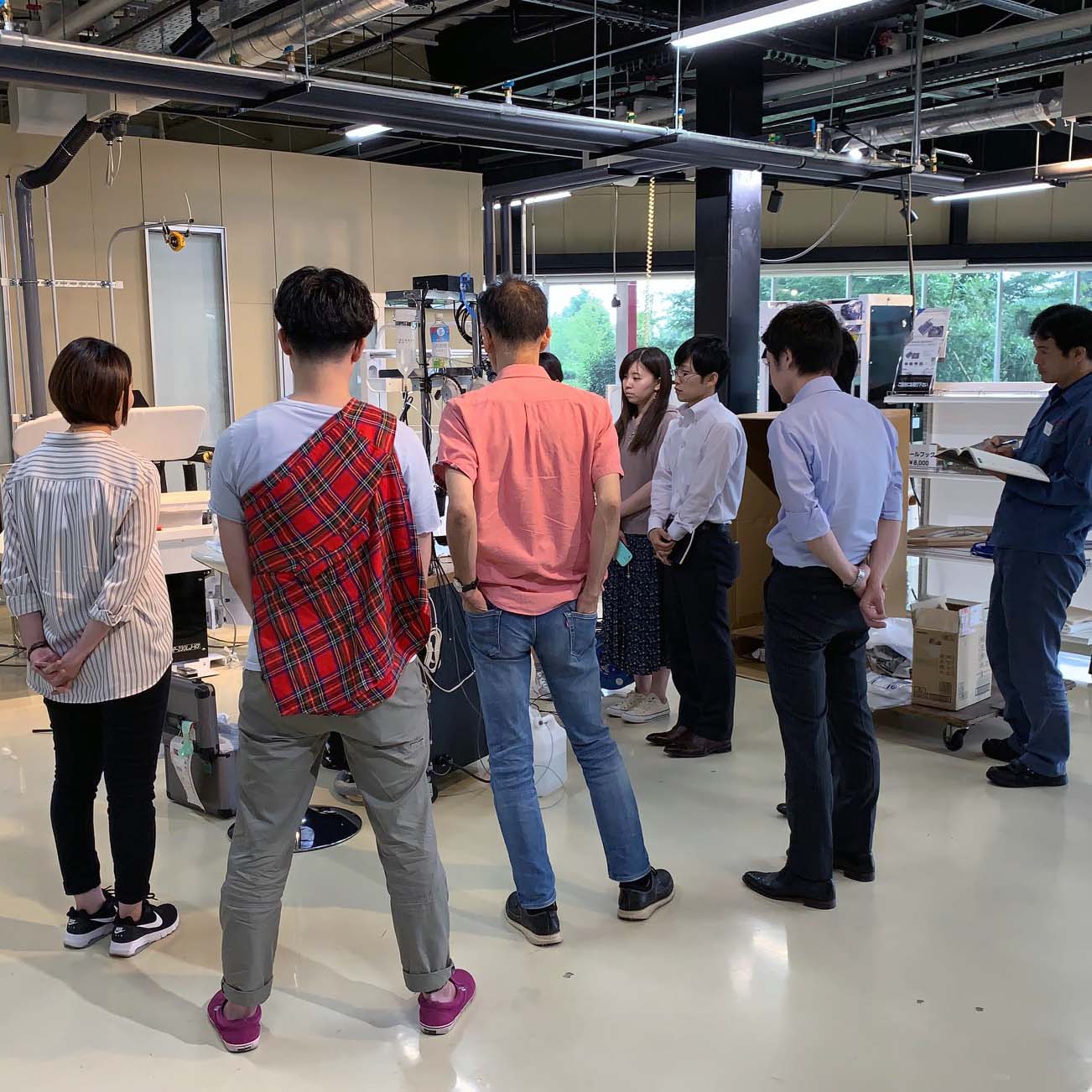 本社では、堀田社長から簡単なスケジュール説明と見学店舗の概要の話があり、本社工場、保管の実情を見せてもらいました。写真16-1。