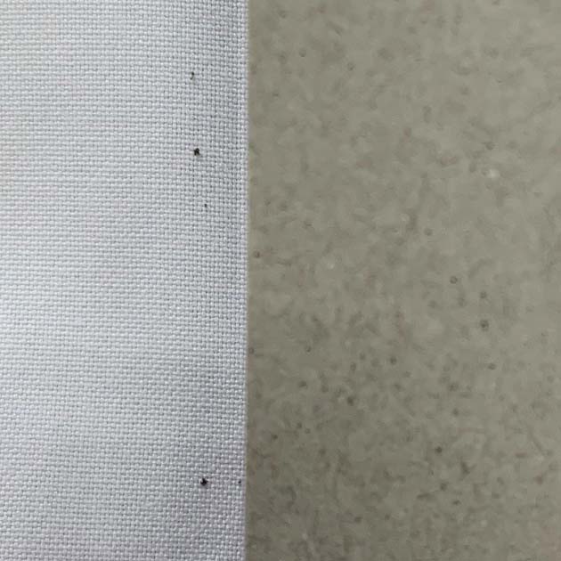 朝、ワイシャツのクリーニングテストの測定をしました。No.2のシャツ、タタミを開いたら台紙の横から砂粒が。写真37-1、37-2。