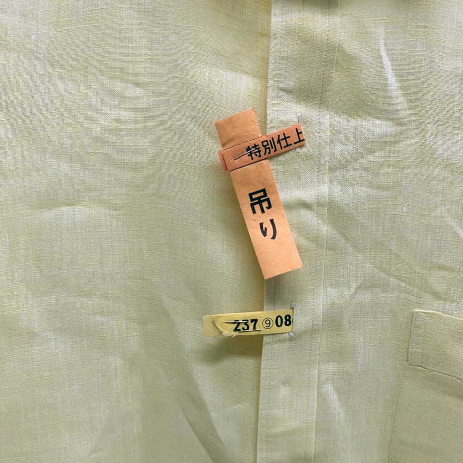 ウエットの収録なので、それにふさわしい服装でと、麻のシャツと麻のネクタイをしていくことにしました。シャツを着ようと思ったら、タグが目に付きました。