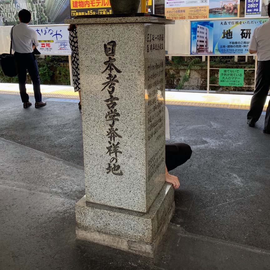ホームに出ると、「大森貝塚」の石碑が建っています。小学生高学年に(69年前)、課外授業として、木のへらと、ササラブラシを持って、貝塚の発掘に出かけたのを思い出しました。何か掘り出せたのか、何も見つけられなかったのか覚えていません。写真7.
