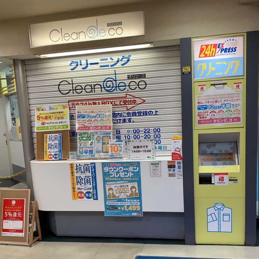 大森駅山王口で見た、クリーニングデコ(F社)の休憩時間中クローズドされたカウンター(写真10)。