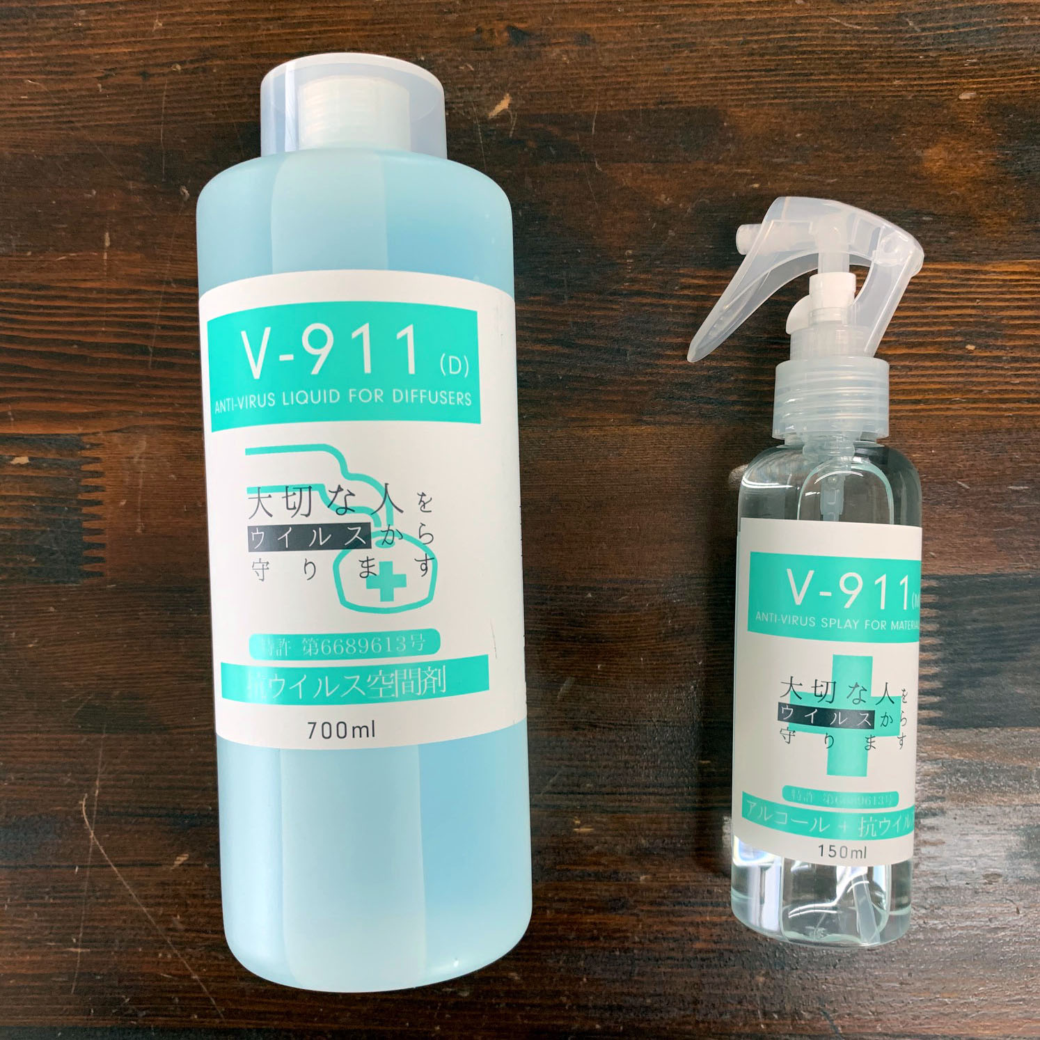 V-911(D)は、アロマディフューザーに入れて散布し、抗ウイルス効果をだすもので、安全な空間を作り出す目的に使用される、他に類を見ない薬剤です。