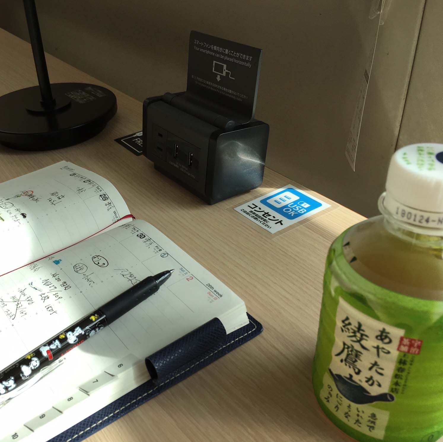 おもむろに、飲み物を買い、ノートを広げ、さて書こうとカウンターを見ると黒いブロックが、なんとコンセントでした。