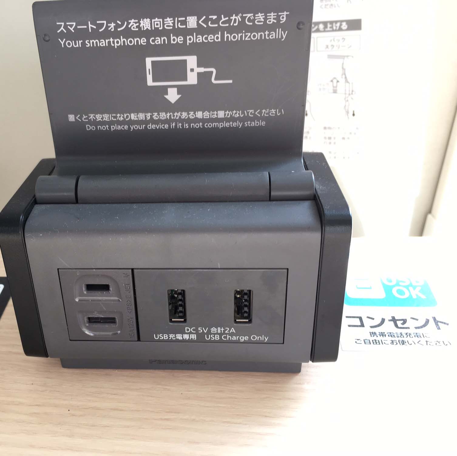 最近は、携帯の普及に合わせるように、充電のためのコンセントが用意されている事が多くなっています。特にスマホでは電気の消費が早く、バッテリーや充電器を持ち歩く人も多いようです。