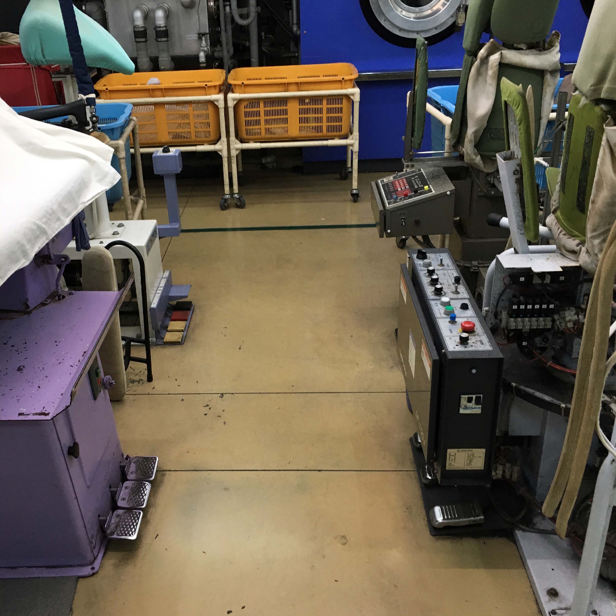 写真1-4は、始業前の掃除をする前の状態。ほとんどゴミは落ちていません。掃除のコツは汚さないことです。写真1-5は、始業前に熱板の手入れ(シリコーン塗布)をしているところ。写真1-6は、工場内の排水ピットを掃除しているところ。この掃除がどれぐらいの頻度で行われているかは承知していません。