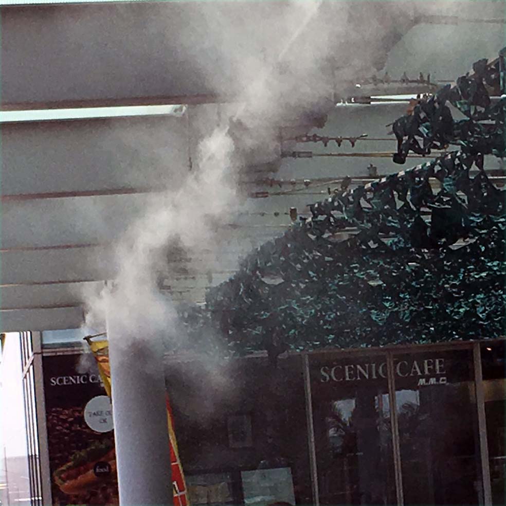 写真2-5は、羽田空港の観覧デッキの横にある喫茶スペース(屋外)での〔ミスト〕です。これも、この日は風が強くて、余り肌に届いてはくれませんでした。