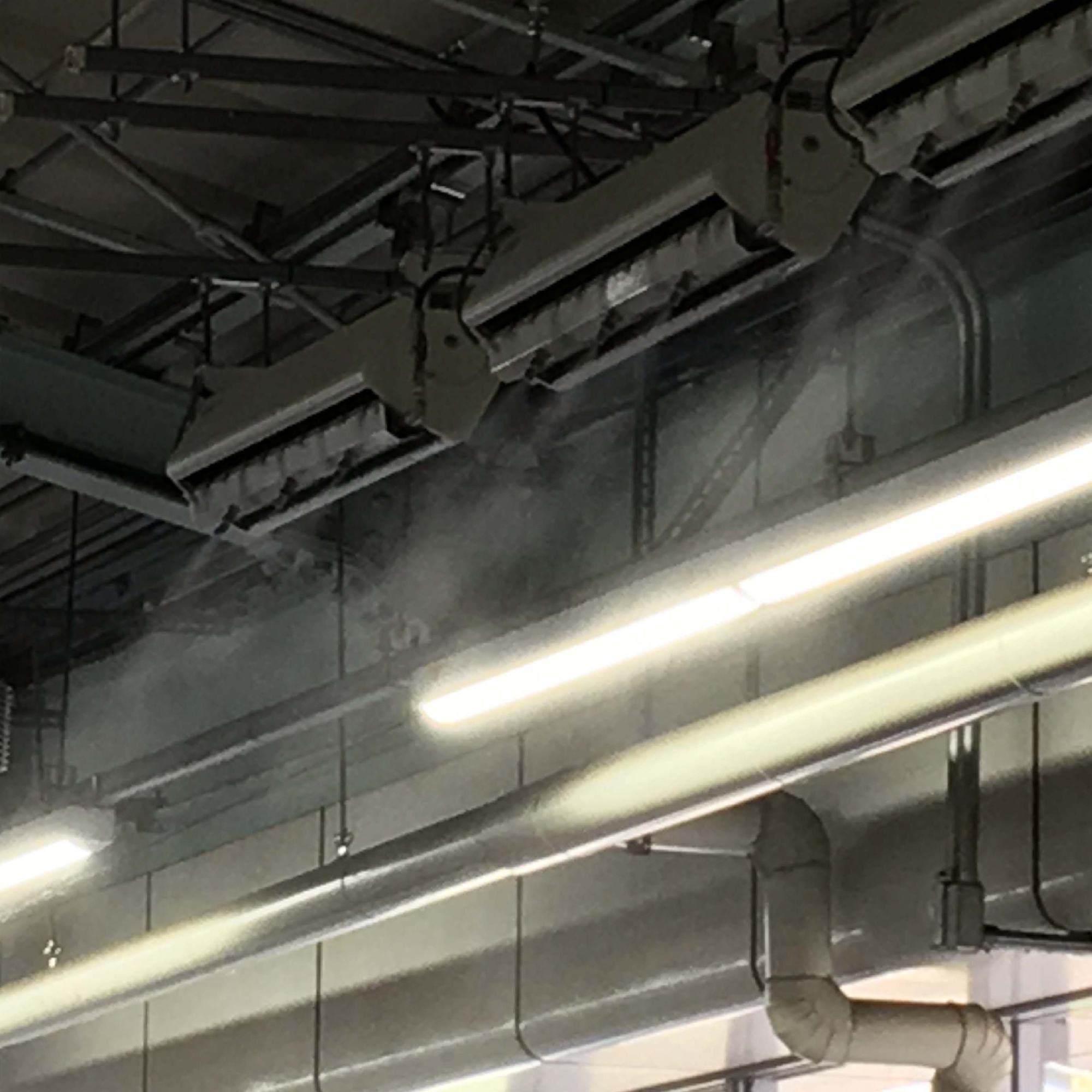 最近、〔ミスト〕による冷却効果をクリーニングの作業場でテストされる例を見ました。まだ、実際にその現場に入っていませんので、実感がつかめないのですが、日本のように湿度の高い所ではミストの蒸発が遅く、体感温度が思うように行かないのではと云うことも聞きます。常温のミストでは無く、冷却したミストを使用したら(使用水量は少ないので)効果が上がるのではということも聞きました。