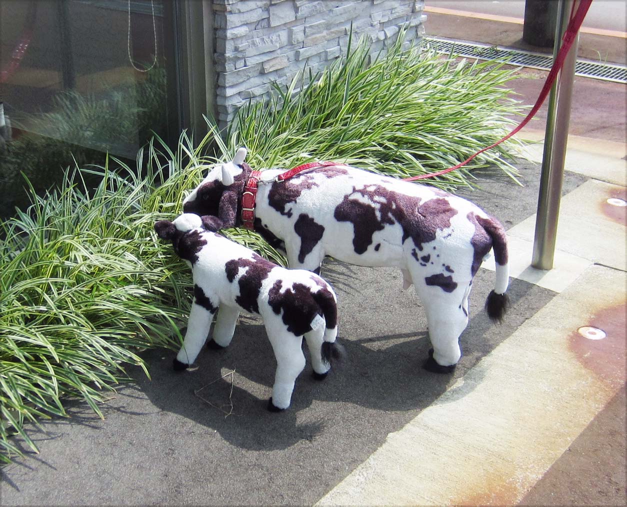 ご存じユーゴ-さんの「黒田ウーサー」写真2-7。ホワイトウイングスのストックベアーで休んでいる「かえる」写真2-8。渡辺ドライの店頭で草を食む「牛の親子」写真2-9。