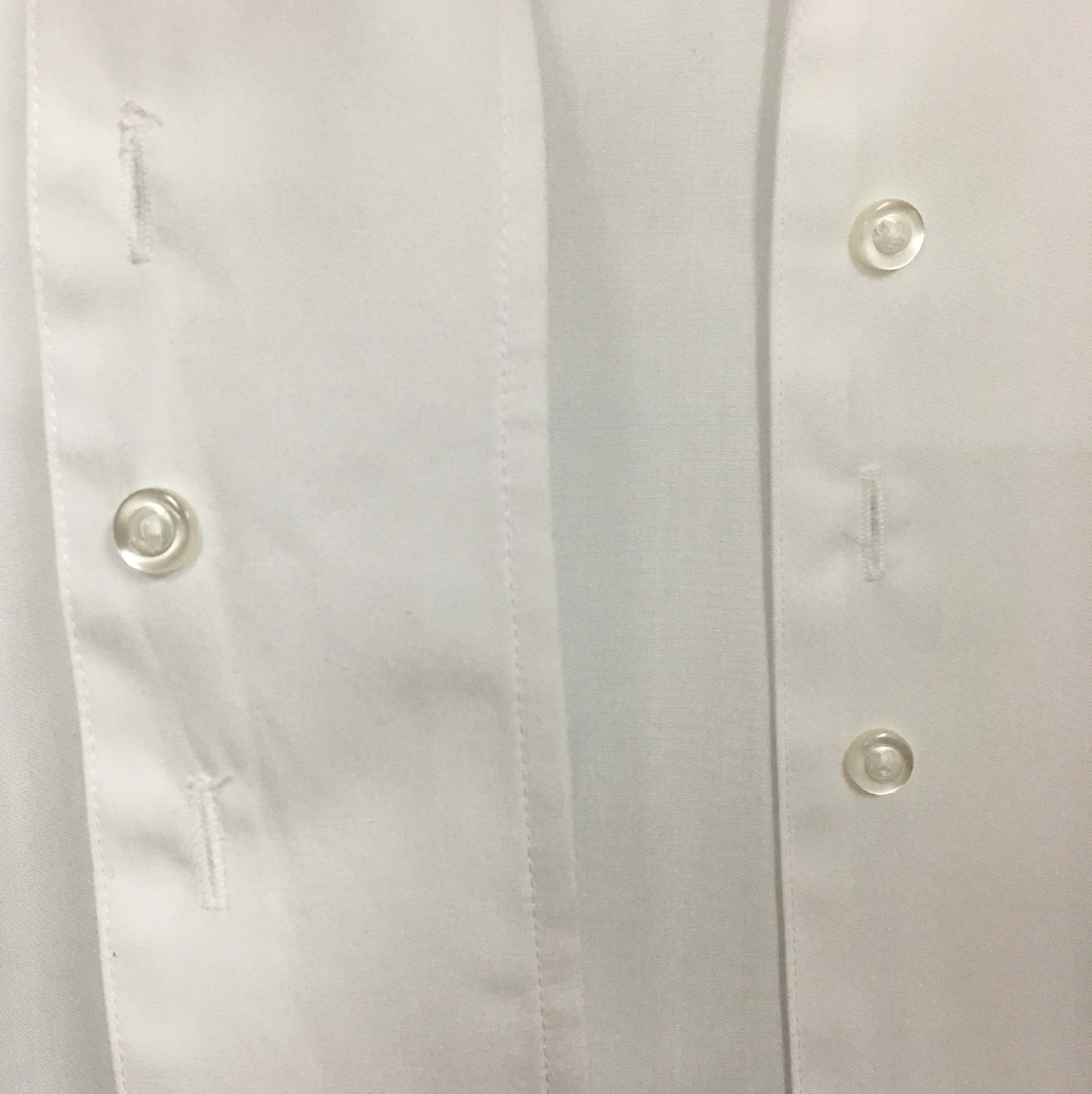 なお、このシャツ第一ボタンと第二ボタンの間の裏側に隠しボタン(写真2-17)が付いていました。