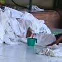 写真2-2、柱に寄りかかっている婦人が、写真2-3、の青いコップに入っている歯ブラシで、タオルに洗剤と思えるものをたたき付けていたそうです。
