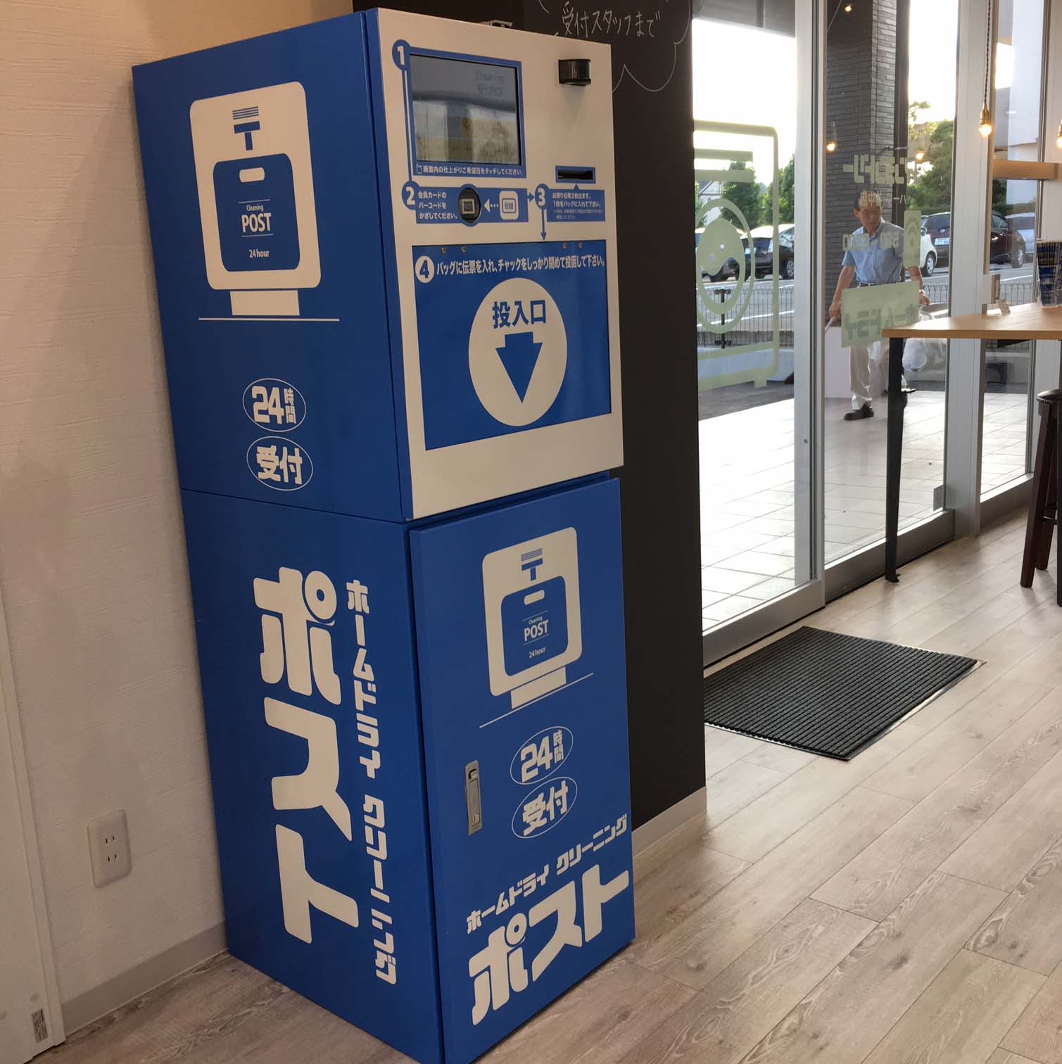 写真1は、久留米で見かけた大型のコインランドリーです。外からは全面ガラス張りで、スッキリと中が見えます。