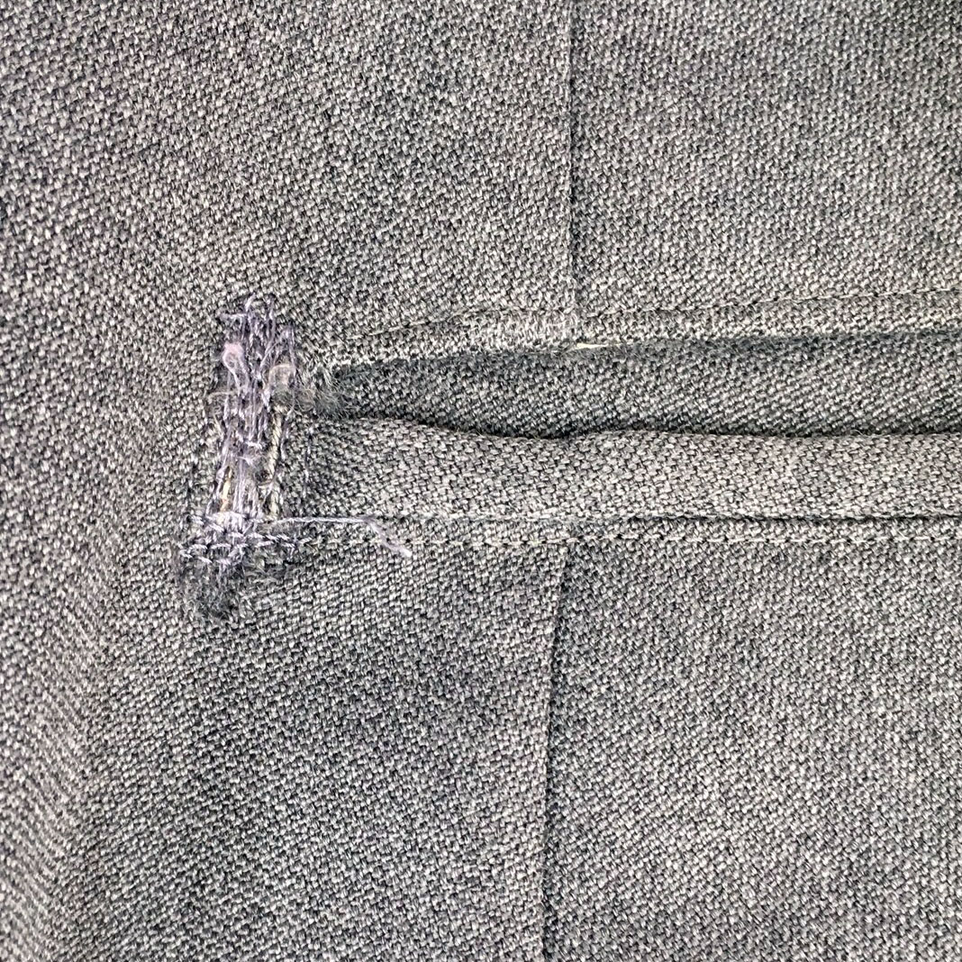 写真2-9は、ズボンの後ろポケットの端が破れた状態です。