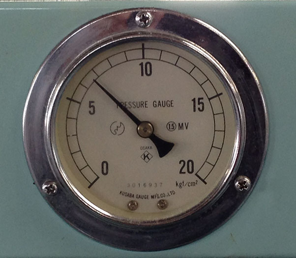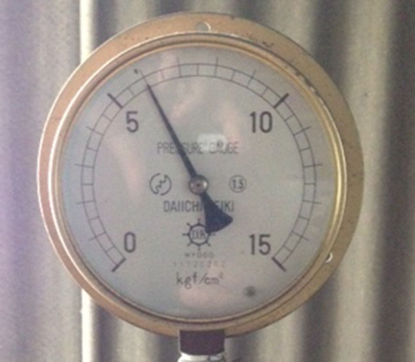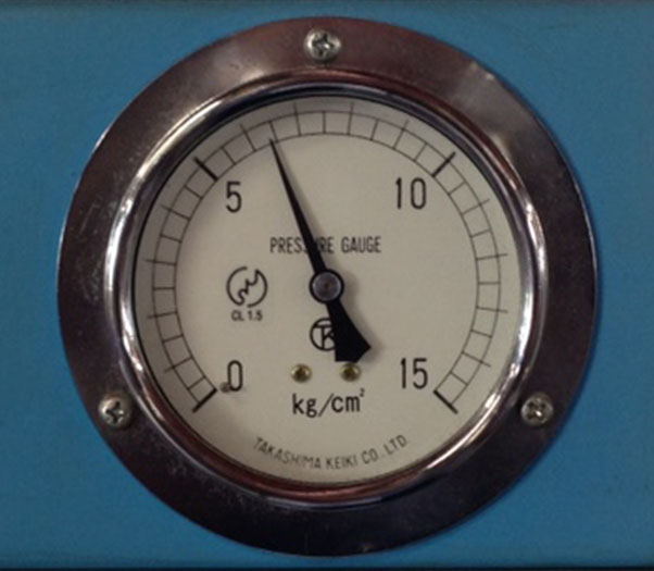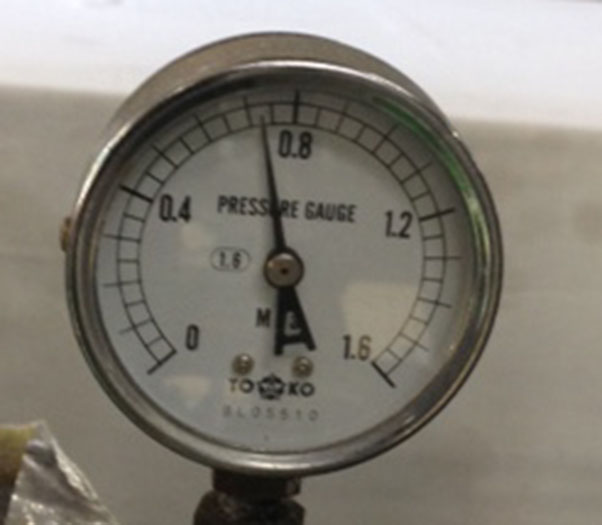 ワイシャツプレスの蒸気圧は多くの工場が〔0.75~0.8MPa〕(写真2-6~2-10)としています。しかし、圧力を上げると衿が縮むと蒸気圧を〔0.5~0.6MPa〕に設定されている工場があります。
