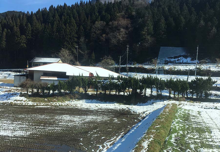 中の写真は、12月18日、伯備線で岡山に向かっている時、車窓で見た風景です。私は都会育ちで田舎と云うものがありませんが、何故かこういう風景を見ると、田舎・ふるさとを感じるのです。