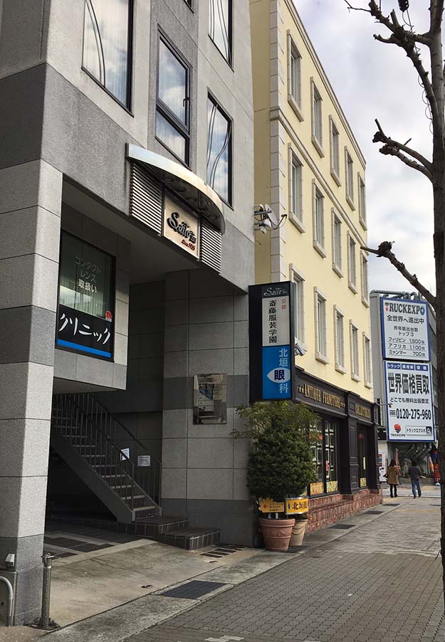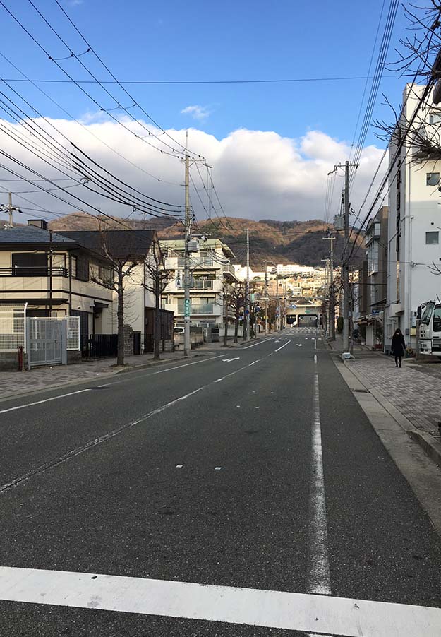 左の写真の手前のビルが当事務所のある建物です。真ん中の写真は、事務所の前の国道2号線、先が東です。右の写真は、2号線から左折、北(山手・六甲)を撮したものです。
