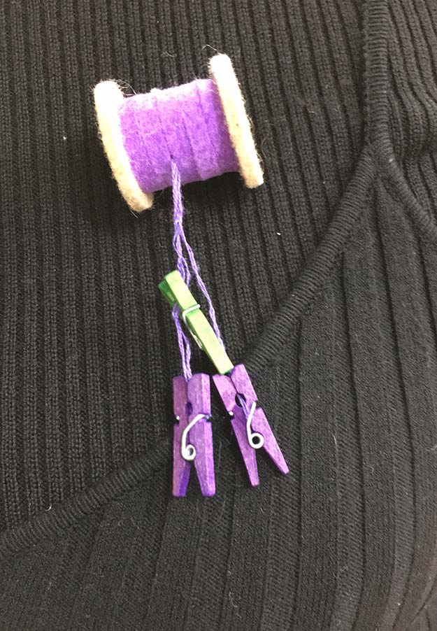 妻がお友達に、「おもしろいでしょ!貴方にぴったりだと思って」とニューヨークのお土産としていただいたのが、上の段の左の写真の「糸巻きと洗濯ばさみ」のアクセサリーでした。