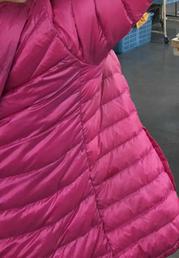 写真のダウンの価格は、ダウンA、ダウンB、ダウンCの順ですが、目的別の縫製とダウンの質、量により異なってきます。
