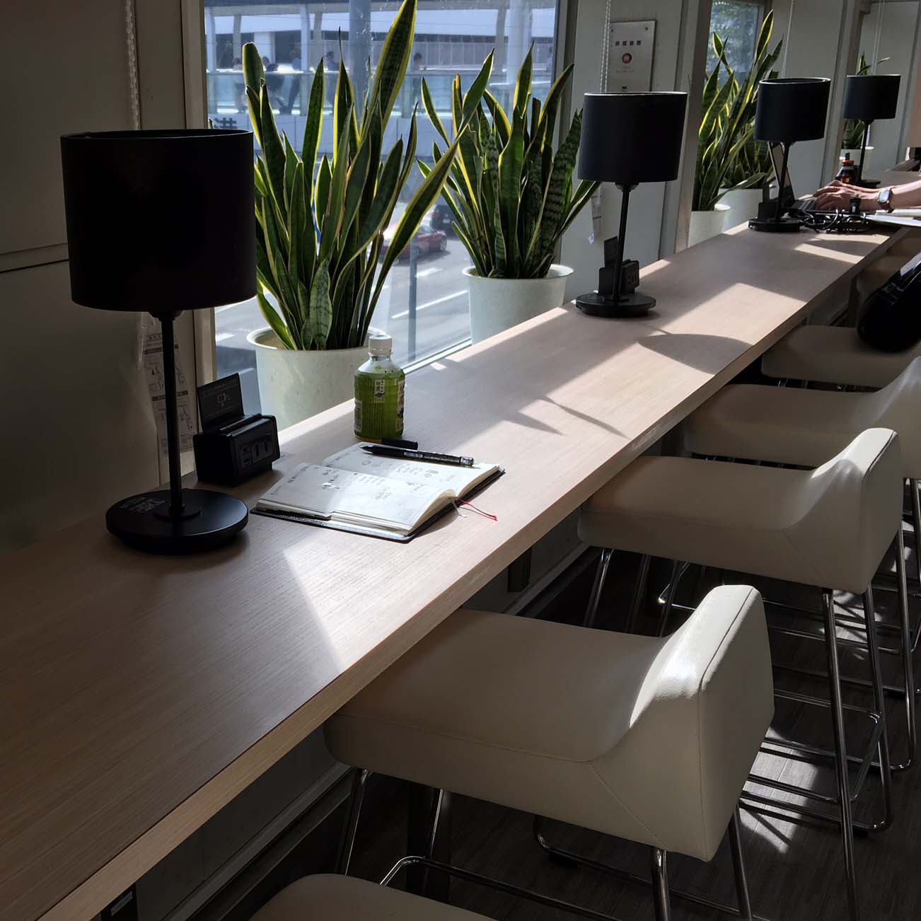 おもむろに、飲み物を買い、ノートを広げ、さて書こうとカウンターを見ると黒いブロックが、なんとコンセントでした。