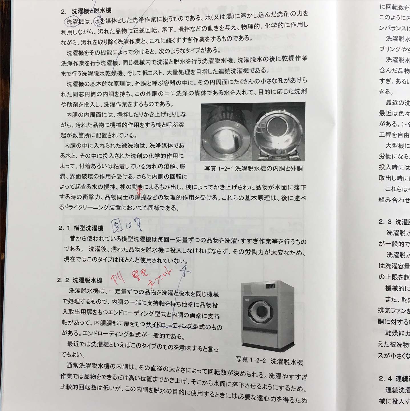 日本産業機械工業会・業務用洗濯機部会というところが出版した「クリーニング機械の基礎技術」という本に目を通しました。