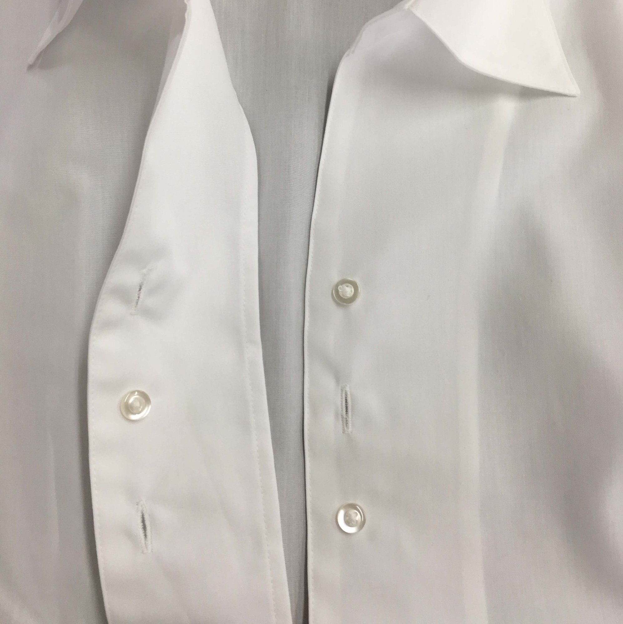 なお、このシャツ第一ボタンと第二ボタンの間の裏側に隠しボタン(写真2-17)が付いていました。