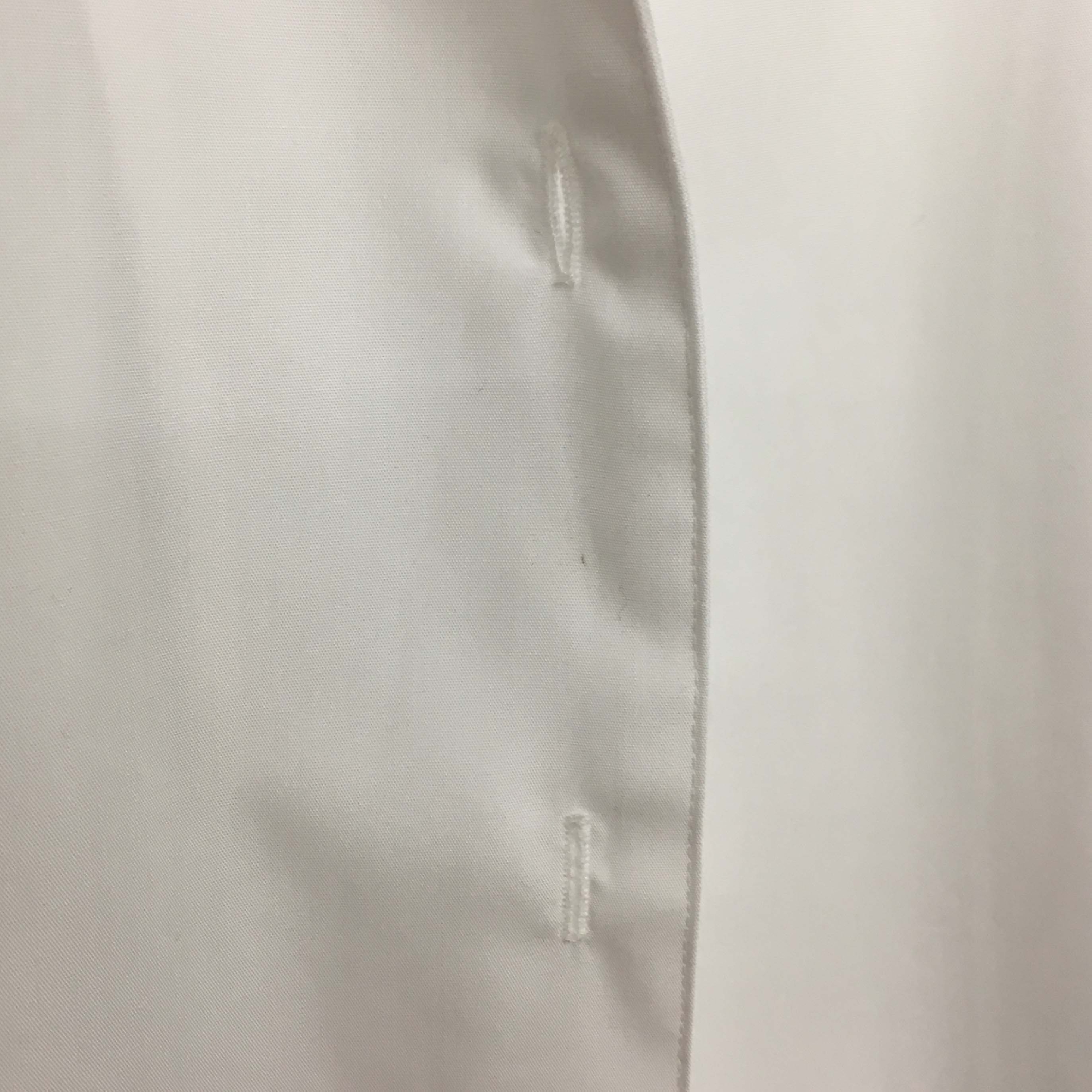 いつも私は、前立て(ボタンホールの側)が縮んだシャツの説明に、「縫製のミス、糸のテンションの計算違いによる」と答えます。
