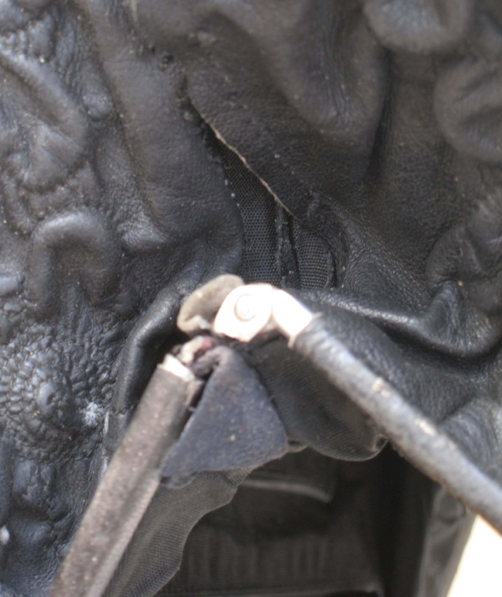 祖母、母親と大切に使ったのでしょうが、全体のつやは無くなり(写真2-9)、角は刷れて破損(写真2-11)、内側は破れて芯がむき出し(写真2-10)になった見るも無惨な形になりました。