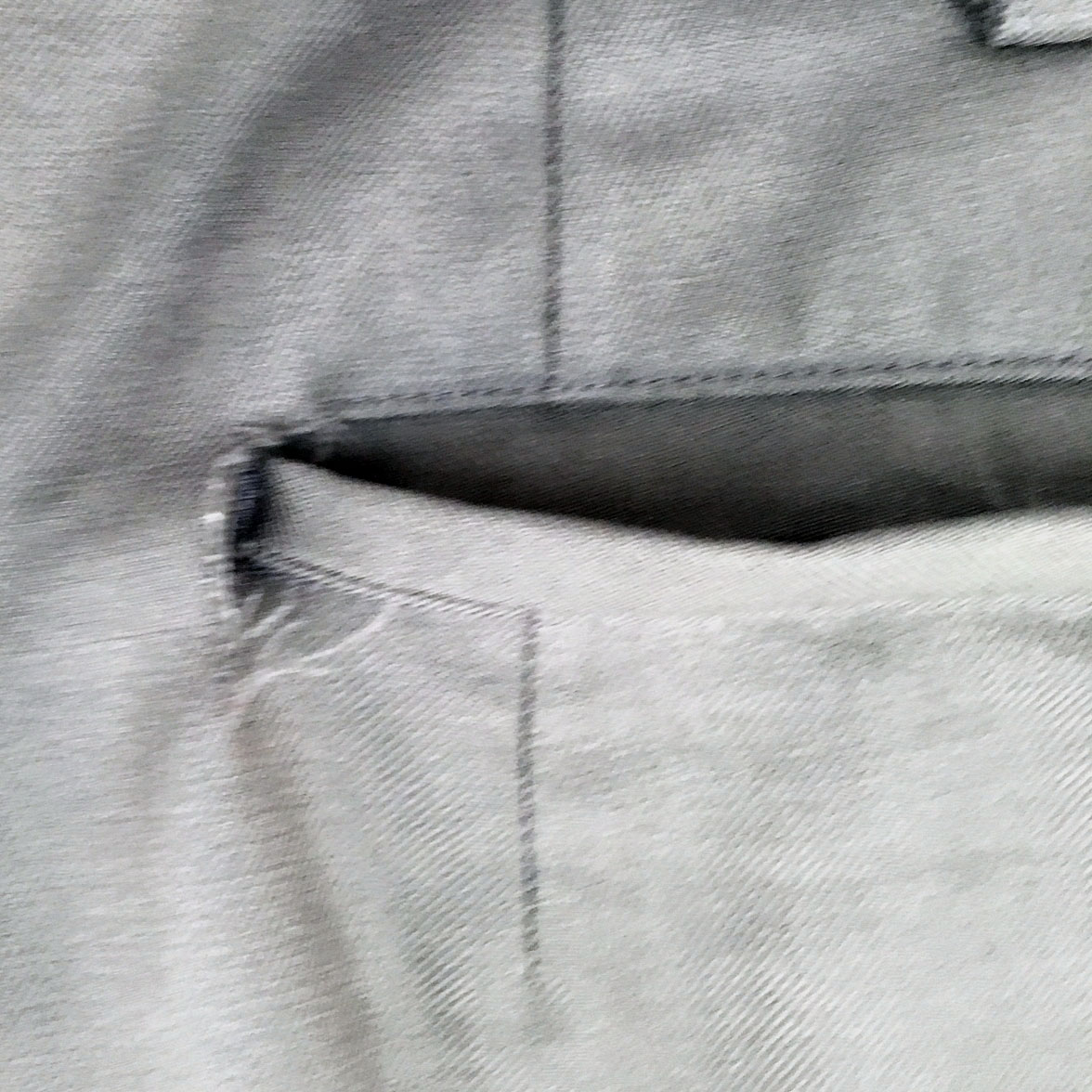 写真2-9は、ズボンの後ろポケットの端が破れた状態です。