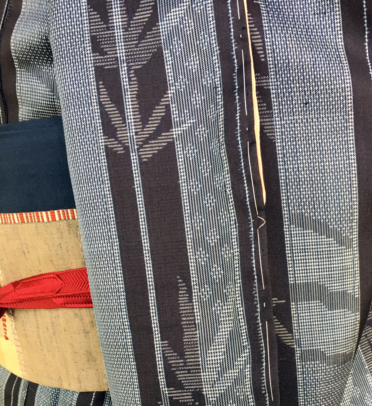 和服をよく見ると、「しつけ糸」がしてありました。(写真3-9,10)