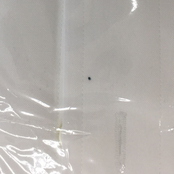 写真2-4の例は、包装紙の外からでもはっきりと見える、毛玉の付いた状態です。この毛玉、単に乗っているように見えますが、包装紙を取って叩いたぐらいでは簡単に取れませんでした。