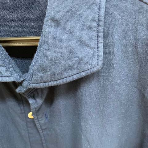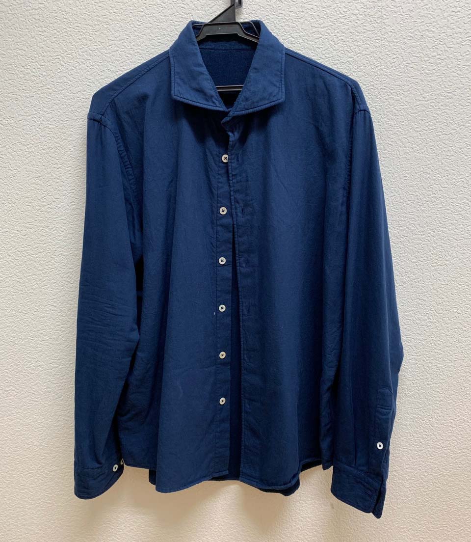 1.カジュアルタイプの紺色・綿・タオル地シャツ。