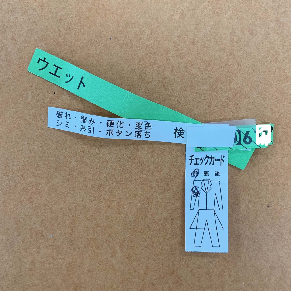 このため、写真のシャツ、どう考えても水で処理されるような商品にも、「ウエット」のタグが必要なのです。