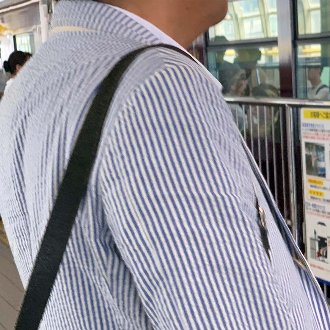 写真6は、先日モノレール蛍池駅で見た光景です。思わず、「良いクリーニング屋さんを紹介しますので、直してもらっては」と声をかけたくなりました。